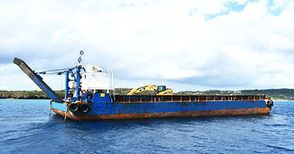 資材やコンクリートガラなど産業廃棄物の海上運搬を得意としています。